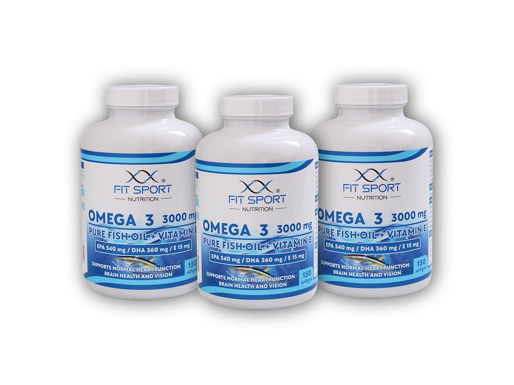 FitSport Nutrition 3x Omega 3 3000mg Pure Fish Oil + Vitamin E 150 softgels - Rybí olej