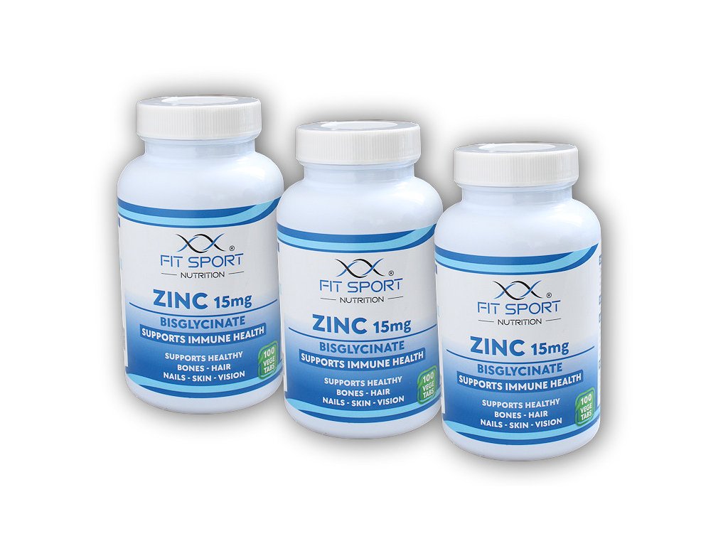FitSport Nutrition 3x Zinc 15mg Bisglycinate 100 vege tablet - Zinek