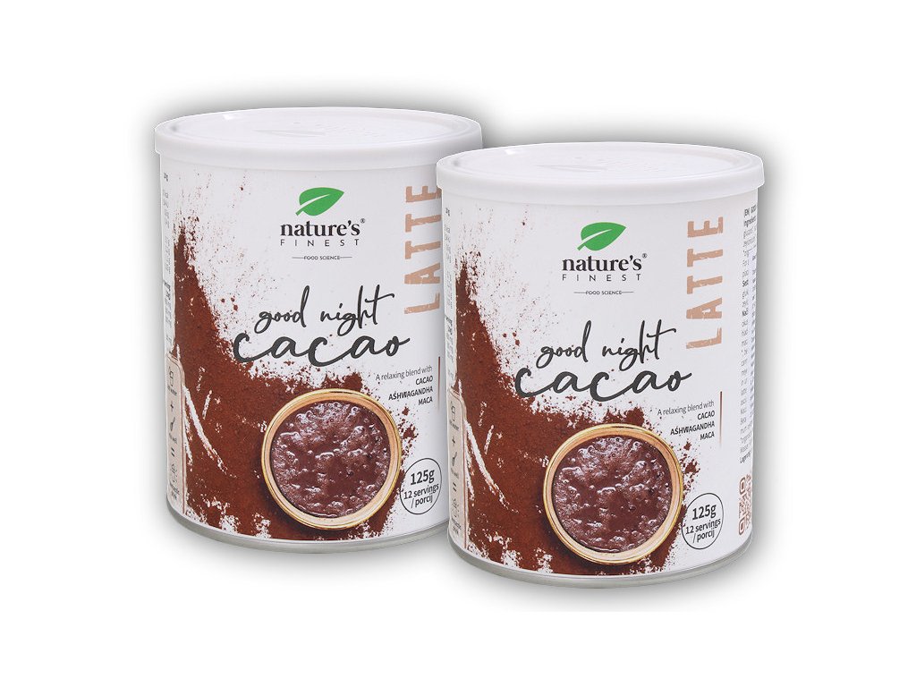 Good Night latte BIO 125gGood Night je lahodný nápoj složený z kakaa, ashwagandy, macy, rýže, kokosu a skořice pro navození pocitu klidu, uvolnění, a zlepšení kvality spánku. Good night ocení každý, kdo potřebuje pomoci tělu lépe se adaptovat na stres, podpořit relaxaci a snáze usínat. Ashwaganda, zázračná rostlina z Himalájí, je jedním z nejvíce ceněných adaptogenů. Večer pomáhá zklidnit, ráno pomáhá probudit se a nabít energií. Vlastnosti macy souvisí s energetickou hladinou, zatímco skořice má účinky související s imunitou, vitalitou a kardiovaskulárním systémem.