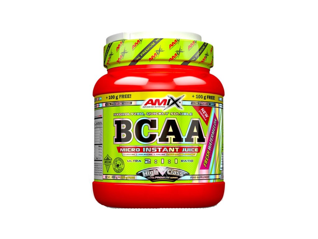 Amix™ BCAA Micro Instant Juice je vysoce koncentrovaná forma BCAA, speciálně vyrobená pro přípravu dokonale rozpustného, chutného a osvěžujícího nápoje. BCAA Micro Instant Juice je zdroj vysoce kvalitních super-mikronizovaných instantních aminokyselin s rozvětveným řetězcem (BCAA) v poměru 2:1:1. Aminokyseliny BCAA jsou stavebními kameny bílkovin, které přispívá k růstu a udržení svalové hmoty. Kombinace těchto esenciálních aminokyselin (L-leucin, L-isoleucin, L-valin) tvoří cca. 33% celkových svalových bílkovin.