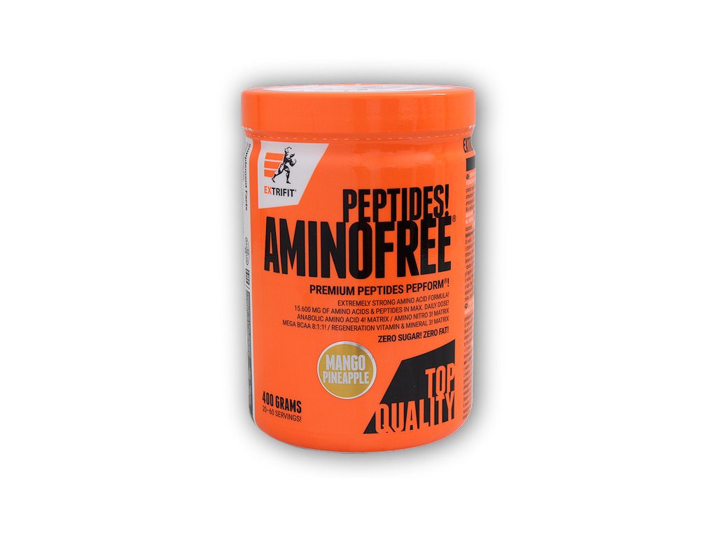 AminoFree ® PEPTIDES je absolutní světová špička v aminokyselinových suplementech. Jedná se o vůbec nejčistší, nejrychlejší a nejlépe vstřebatelnou formu základních stavebních kamenů lidské svalové hmoty. Extrifit vyvinul zcela výjimečný produkt, který je složen z vysoce kvalitních a velmi drahých komponent. Aktuálně ve světě aminokyselin a peptidů nic lepšího, čistšího ani rychlejšího pro růst svalů a svalovou regeneraci neexistuje. Jedná se o sofistikovanou kombinaci výhradně volných (free form) aminokyselin v plném aminospektru s naprosto novou a revoluční formou značkových peptidů PepForm ®. Tyto patentované peptidy jsou v produktu zastoupeny v masivní míře a jedná se o peptidy těchto nejdůležitějších aminokyselin: arginin PepForm ®, glutamin PepForm ®, leucin PepForm ®, isoleucin PepForm ®, valin PepForm ®.