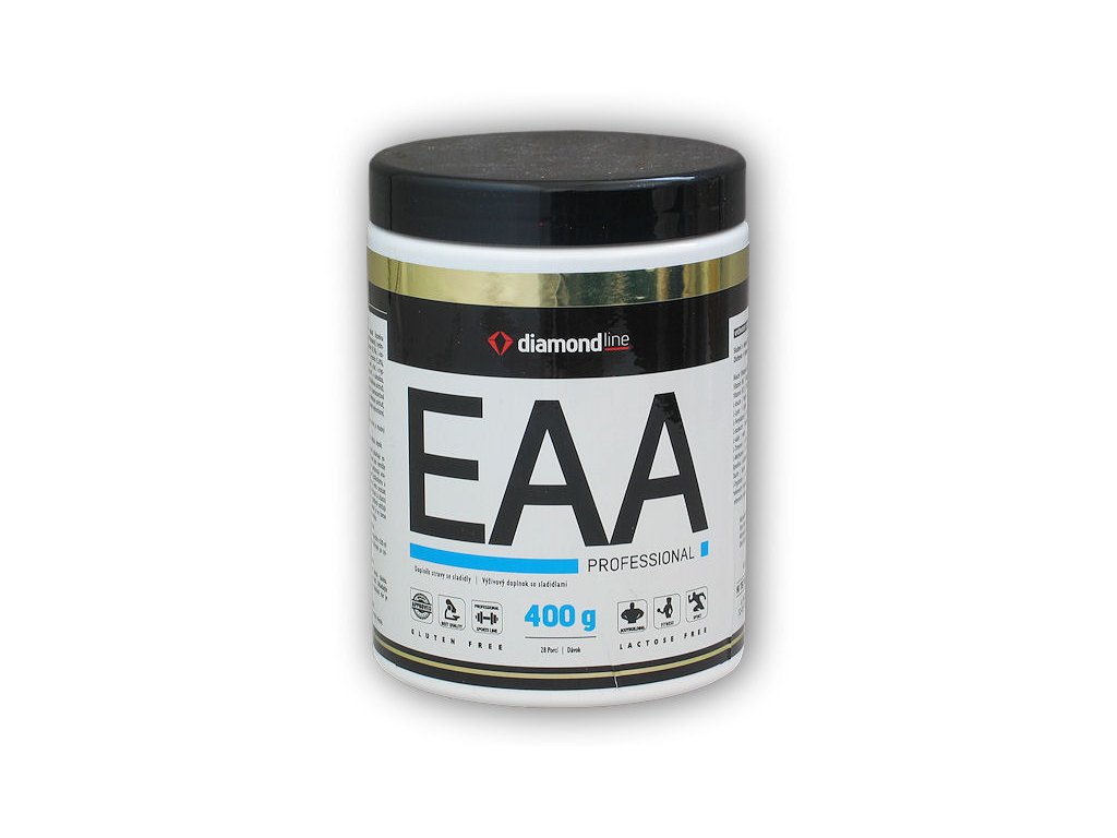 EAA POWDER Diamond Line je nový výrobek, který obsahuje hlavně exogenní aminokyseliny, tj. ty, které tělo nemůže vyrábět samo. EAA v luxusní řadě Diamond Line podporuje anabolické procesy, chrání svaly proti katabolismu a zlepšuje regeneraci po tréninku. Tento produkt obsahuje aminokyseliny důležité pro asimilaci bílkovin z potravin a pro pozitivní udržení dusíkové rovnováhy v těle. Přípravek je v práškové formě s dobrou rozpustností a chutí.