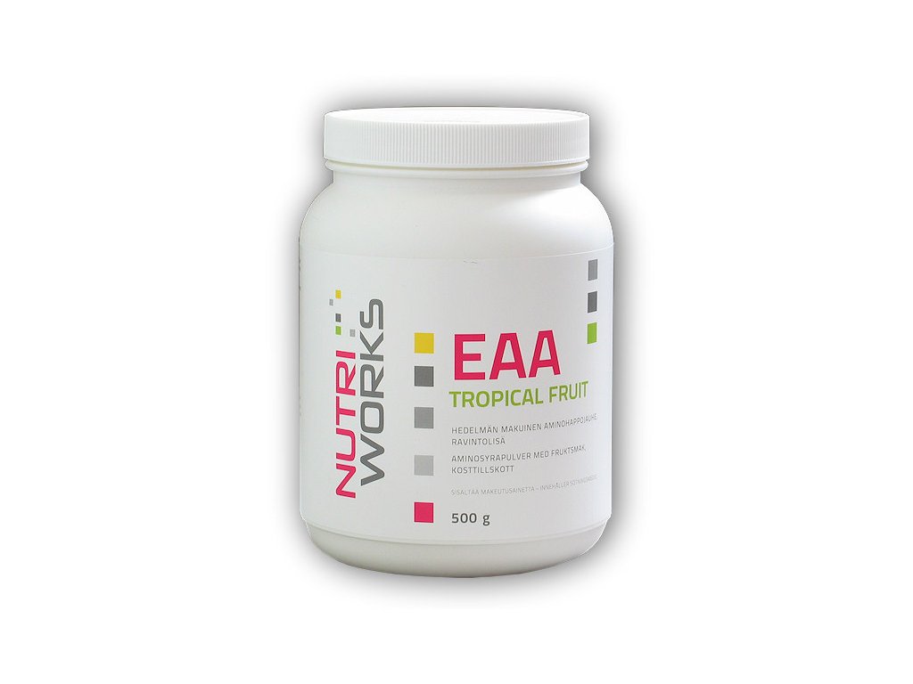 V EAA Nutriworks je navíc aditivum citrulin-malátu, který je rovněž zaměřený na oblast svalové únavy a také na posílení maximalizace výkonu. Produkt neobsahuje žádná umělá sladidla ani aditiva, slazený je pouze steviol-glykosidy, nebo je nabízen v naturální verzi. EAA Nutriworks jsou ideální podporou aktivního životního stylu.