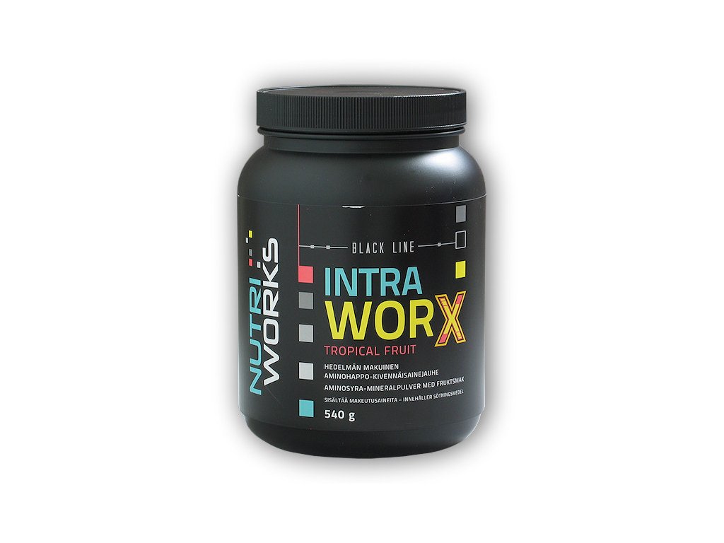 Intra Worx z řady „black line“ je špičkový intra-tréninkový nápoj obsahující 15g EAA (esenciální aminokyseliny) v každé dávce, a z toho 11g BCAA. Produkt je dále obohacen o beta-alanin a citrulin-malát pro optimální svalovou pumpu a minerály pro obnovu elektrolytů ztracených během tréninku. Produkt je slazený steviol-glykosidy a sukralózou. Vybrané aminokyseliny jsou získávány přednostně fermentační technologií.