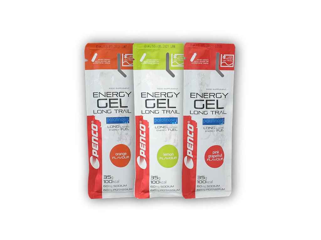 Penco® ENERGY GEL LONG TRAIL zvyšuje hladinu sacharidového „paliva“ před a během výkonu. Obsahuje speciální směs komplexních sacharidů (maltodextrinů) a jednoduchých cukrů (glukózy a fruktózy) a nyní nově i Palatinosu pro postupné uvolňování energie během déletrvajících sportovních výkonů.
