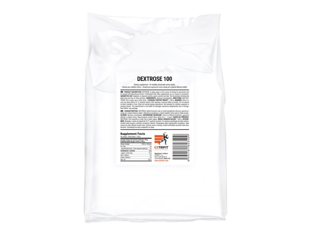 - m nožství Dextrose 100 závisí na tělesné hmotnosti, sportovní aktivitě a složení stravy