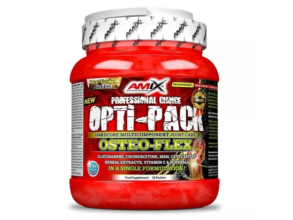 Amix ™ Opti-Pack Osteo-Flex je kompletní kloubní výživový doplněk speciálně navržen pro podporu potřeb tvrdě trénujících sportovců. Osteo-Flex je složen z velkých dávek glukosaminu, chondroitinu, MSM, UltraGrad® lněného oleje, kyseliny hyaluronové, vitaminu C, vápníku, hořčíku, zinku a bylinných extraktů (kadidlovníku pilovitého, zázvoru, šípku a kůry vrby bílé), které podporují zdraví kloubů.