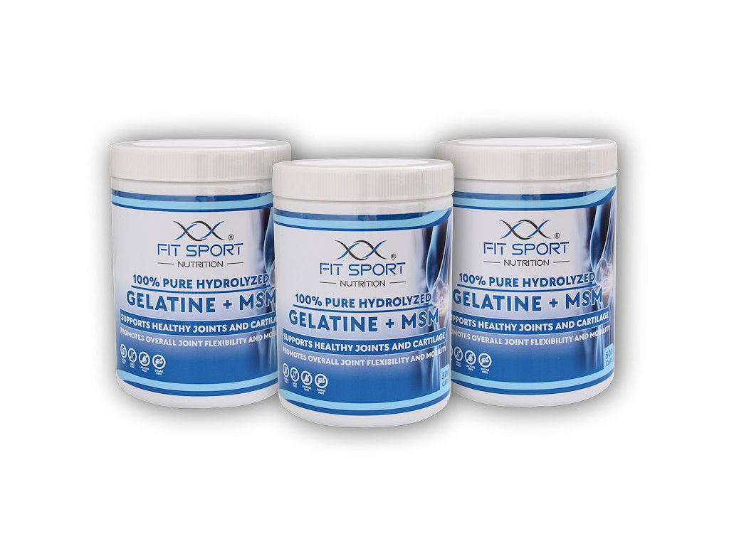 FitSport Nutrition 3x 100% Pure Hydrolyzed Gelatine + MSM 500 kapslí - Želatina + MSM