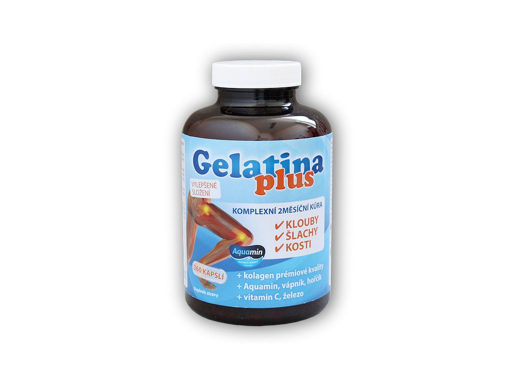 Gelatina plus představuje jedinečný komplex kolagenu a minerálních látek a s vitaminem C pro správnou výživu a funkčnost kloubního aparátu. Gelatina plus je doporučována ženám i mužům ve středním a pozdějším věku, aktivním sportovcům, lidem s nadváhou a všem, kteří si chtějí udržet kosti a klouby v dobrém stavu. Kolagenní prémiové spektrum poskytuje špičkový inovativně upravený bílkovinný komplex s optimálním spektrem kolagenních látek, v nejvyšší čistotě a dokonalou vstřebatelností. Spektrum kolagenů I, II, III je základním stavebním kamenem pro celý pohybový aparát, zejména pro chrupavčitou výstelku kloubů. Tvoří pevná a ohebná vlákna, která se vyskytují v pouzdrech kloubů, tkáních kostí, šlach a vazů, ale i kůži. Normální kloubní aparát je pevný, pružný, vzdoruje tlaku a zátěži.