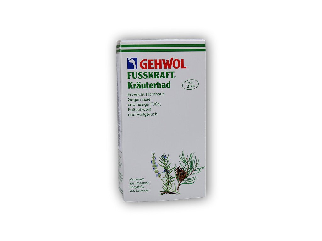 Fusskraft - bylinná koupel na nohy s ureou. Změkčuje ztvrdlou pokožku. Proti drsné, popraskané a potící se pokožce a zápachu nohou. Osvědčené účinné látky z éterických olejů z horské sosny, rozmarínu a levandule:
