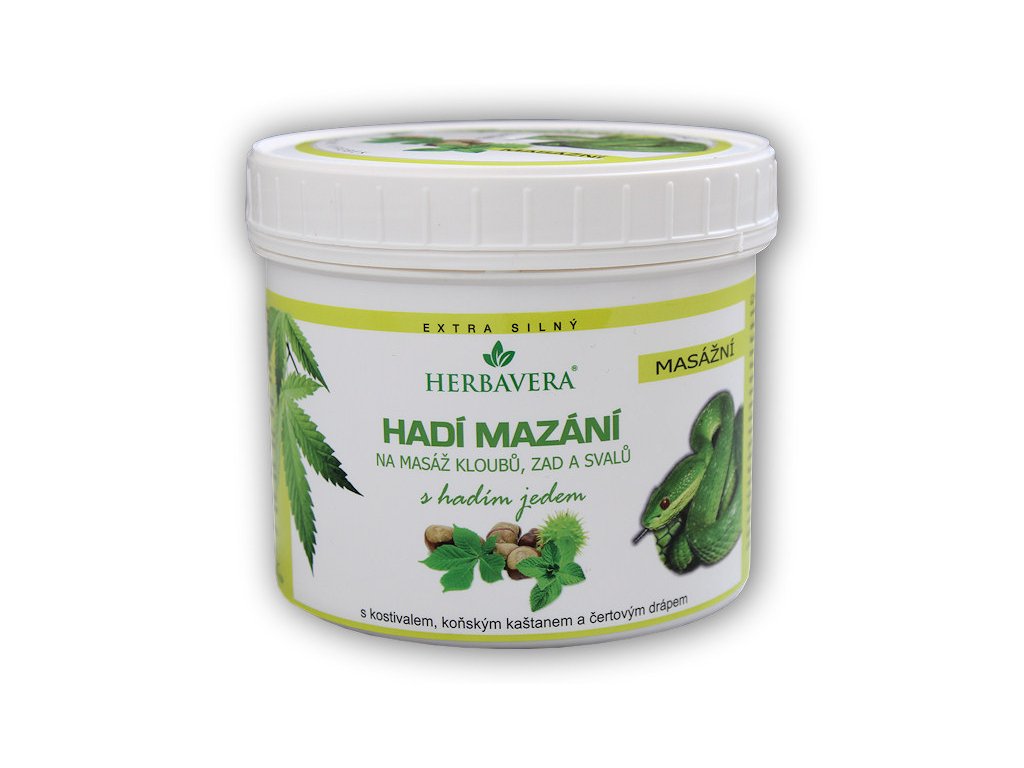Herbavera Hadí mazání se syntetickým jedem chřestýšovce, konopím a kaštanem.
