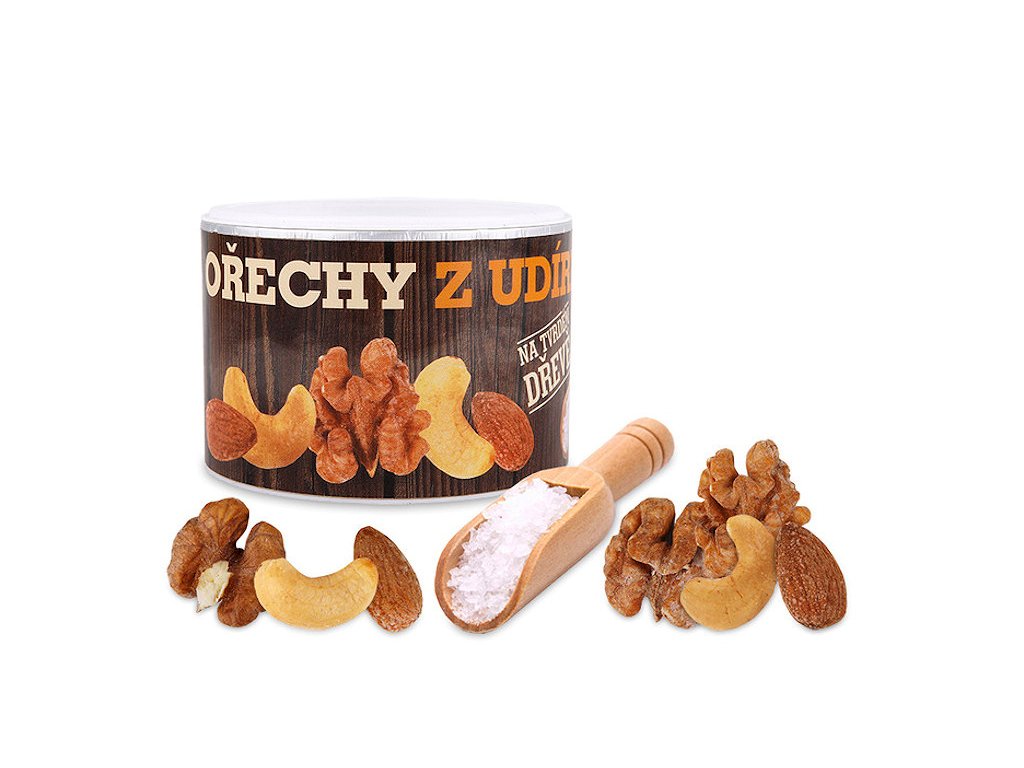 Seznámili jsme kešu, mandle a vlašské ořechy s domácí udírnou, kde jsme jim na teplém kouři z bukového dřeva dodali skutečně delikátní uzenou chuť se špetkou soli. Jedinečná pochoutka pro gurmány.