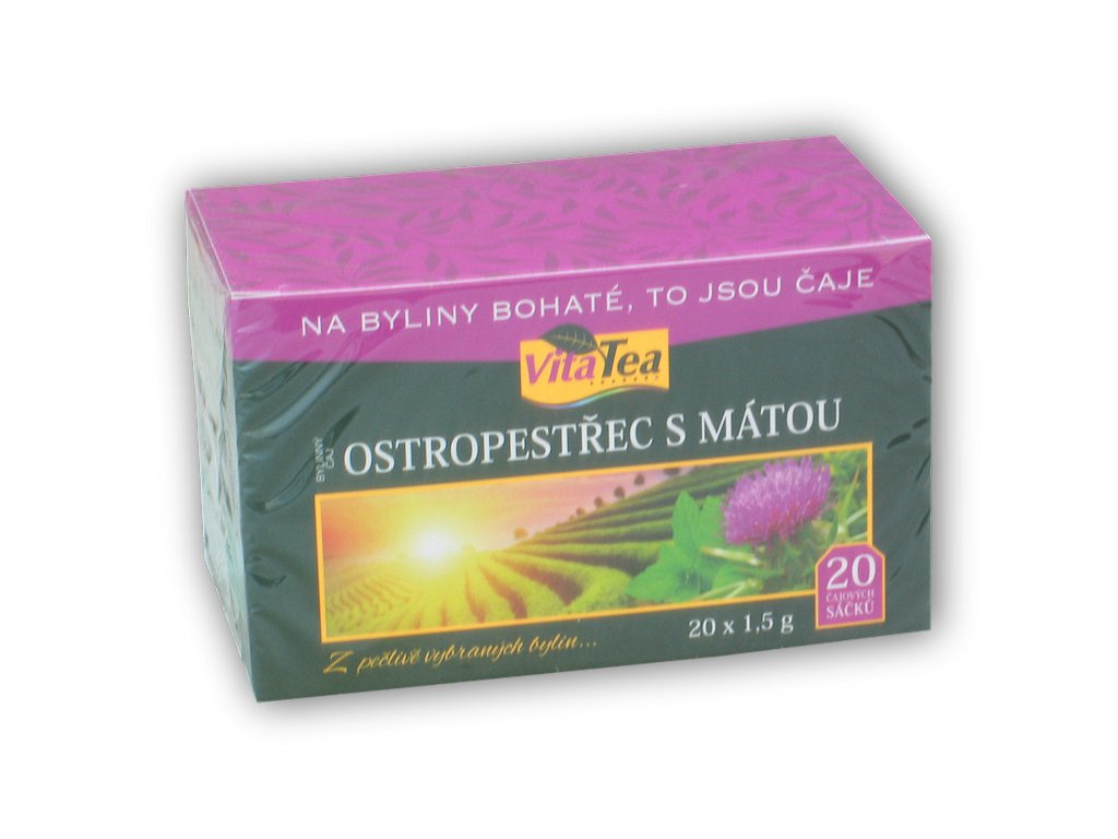 Ostropestřec příznivě působí při regeneraci jater a podporuje jejich detoxikační funkci. Máta podporuje zdravé trávení. Balení obsahuje 20 sáčků po 1,5 g.