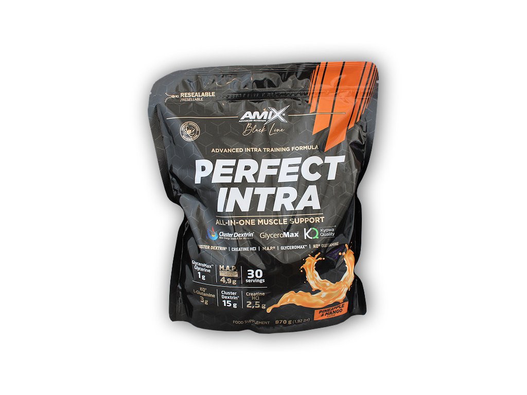 Amix™ Perfect Intra je unikátní sportovní doplněk určený pro nejnáročnější sportovce, aby posunuli jejich intenzivní tréninky na další úroveň. Tento osvěžující nápoj je obohacen o nejdůležitější „intra workoutové sloučeniny“. Jedná se o pokročilou kombinaci vysoce rozvětveného cyklického dextrinu (HBCD) Cluster Dextrin®, GlyceroMax™, kreatinu HCl, aminokyselin M.A.P.® s L-glutaminem a vitamíny.