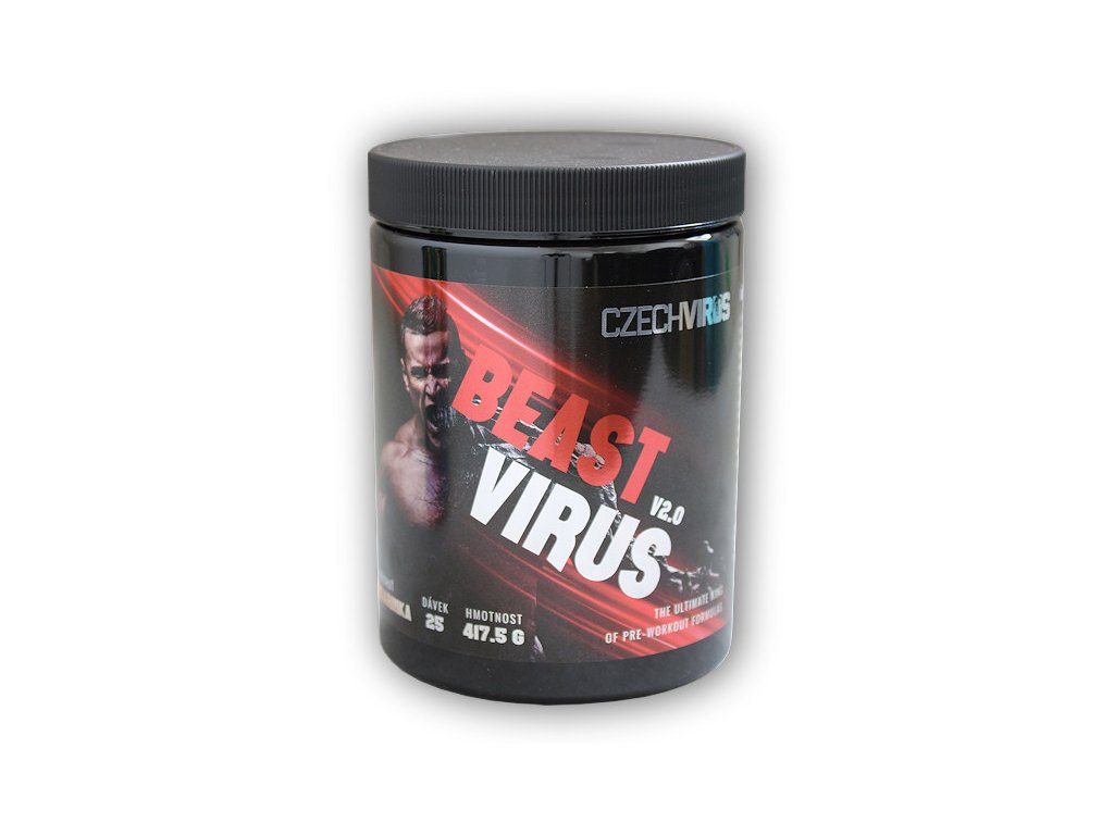 Beast Virus® V2.0. je horkou novinkou z dílny nejoriginálnější české značky Czech Virus®. Původní Beast Virus pravděpodobně není potřeba ani představovat, tento produkt způsobil naprosto bez debat revoluci v kategorii před tréninkovek a udával trendy ostatním značkám, které Beast velmi rády napodobovaly. Doba jde však stále kupředu a proto jsme se po 5-ti letech rozhodli naši originální recepturu inovovat a přinést na český trh zpět krále českých před tréninkovek. Nic jsme neubírali, pouze jsme přidali 4 nové látky = 13 aktivních látek celkem!