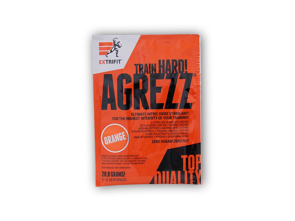 Přinášíme Vám naprostou novinku od Extrifitu! Chcete zažít skutečnou intenzitu tréninku? Takovou, kdy cítíte nejen maximálně napumpované svaly, ale také dokonalou koncentraci na trénink, kdy jste schopni ze sebe vydat maximum a vše jde samo? Zkuste náš nový produkt a posuďte sami! Agrezz ® je profesionální produkt určený pro maximalizaci výkonu, síly a silové vytrvalosti nejen kulturistů, ale všech sportovců, jejichž výkon má silově-vytrvalostní charakter, jako jsou hokejisté, zápasníci MMA apod. Agrezz ® dokáže odstranit lenost a výrazně prodloužit délku a intenzitu silového tréninku. Výrazným účinkem je efekt maximálního soustředění na výkon, což potvrdili prakticky všichni respondenti, kteří měli možnost Agrezz ® vyzkoušet ještě před uvedením na trh.
