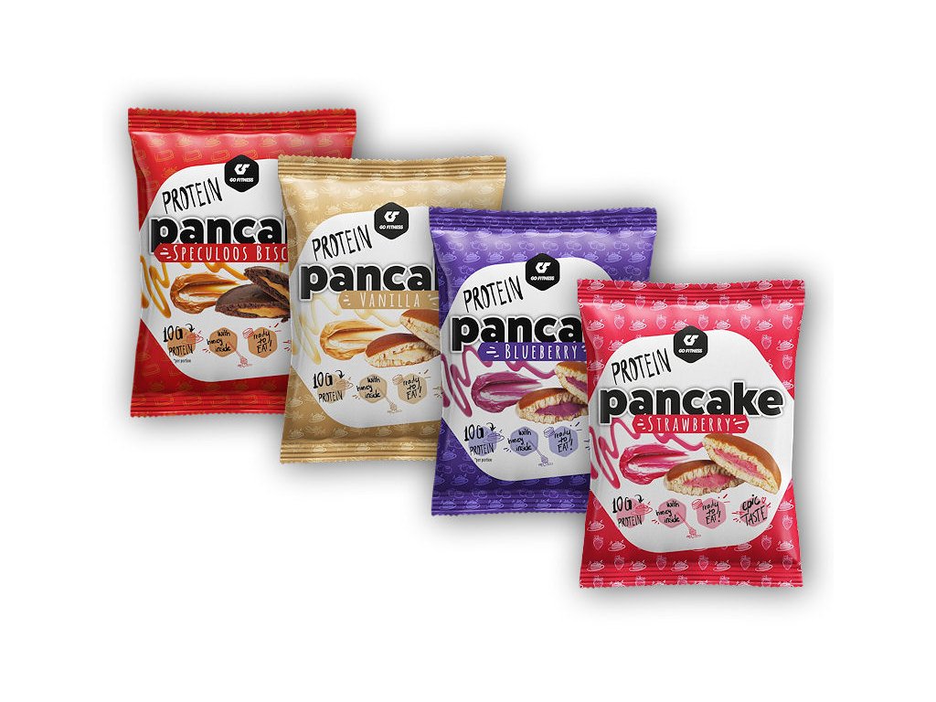 Fanoušci sladkých fitness svačinek budou nadšeni. Naše měkké palačinky plněné lahodným proteinovým krémem udávají nový směr ve fitness výživě. Těsto na palačinky se skládá ze syrovátkového proteinu, mouky a vajec. Náplň je vyrobena z lahodné šlehačky proteinového krému.