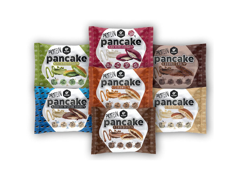 Fanoušci sladkých fitness svačinek budou nadšeni. Naše měkké palačinky plněné lahodným proteinovým krémem udávají nový směr ve fitness výživě. Těsto na palačinky se skládá ze syrovátkového proteinu, mouky a vajec. Náplň je vyrobena z lahodné šlehačky proteinového krému.