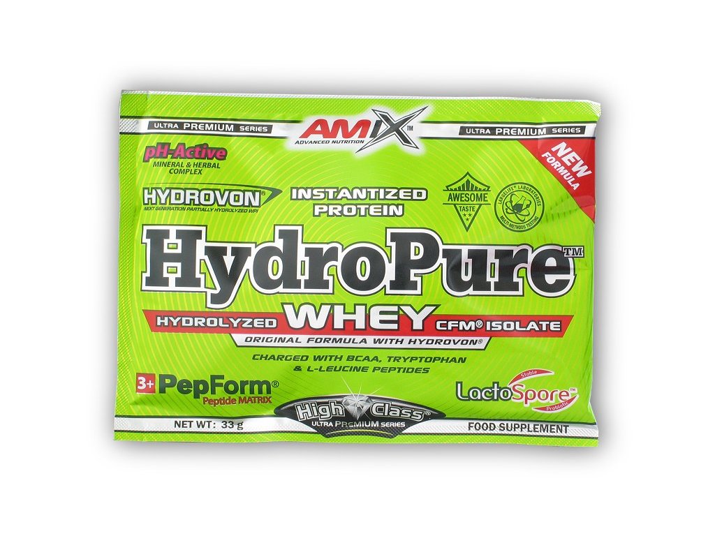 Amix™ HydroPure™ Whey Protein je špičkový protein se 100% obsahem značkové suroviny Hydrovon®. Hydrovon® je čistý hydrolyzovaný CFM® syrovátkový izolát. Produkt je navíc obohacen o komplex peptidů PepFormTM, pH-Active komplexem a probiotiky LactoSpore®.