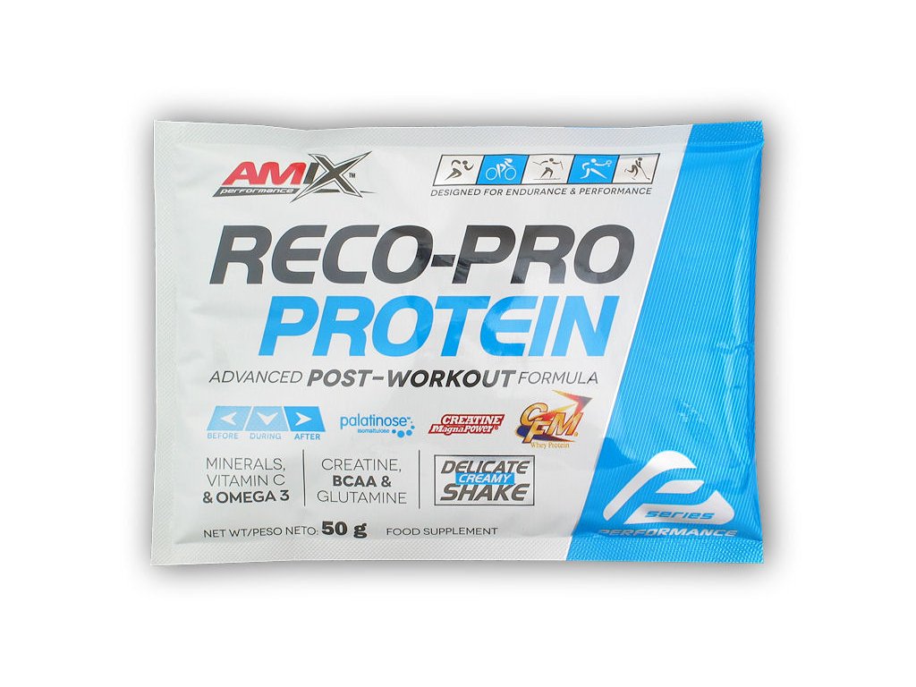 Kvalitní a chutný proteinový koktejl speciálně připravený pro použití po fyzickém výkonu. Reco-Pro obsahuje vyvážený proteinový komplex, doplněný o kvalitní zdroj sacharidů, kreatin, instantní BCAA, L-glutamín, minerály, vitamín C a Omega-3 mastné kyseliny.