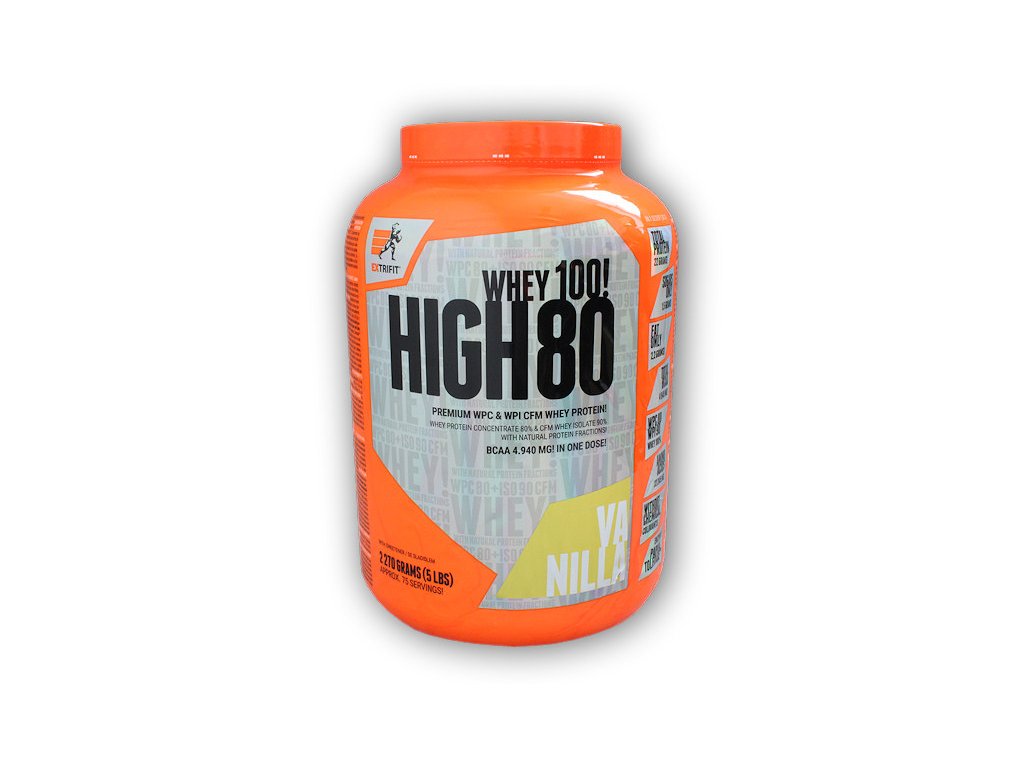 High Whey 80 je naprosto nový výrobek od Extrifitu! Proteinové výrobky a gainery jsou jednou z našich specializací. Neustále zdokonalujeme jejich složení a vyvíjíme nové receptury s využitím stále lepších a modernějších surovin. High Whey je špičkový 100 % syrovátkový proteinový koncentrát a CFM proteinový izolát pro nárůst svalové hmoty! High Whey 80 je vysoce kvalitní protein obsahující instantní (výborně rozpustný) syrovátkový ultrafiltrovaný 80 % koncentrát a špičkový instantní syrovátkový mikrofiltrovaný 90 % izolát vyrobený metodou CFM neboli Cross-Flow Microfiltration. High Whey 80 je tedy kombinací dvou mimořádně kvalitních zdrojů syrovátkového proteinu se zachováním všech přírodních bílkovinných frakcí (beta laktoglobulin, alfa laktalbumin, glykomakropeptidy, imunoglobulin G, bovinní sérový albumin, laktoferin).