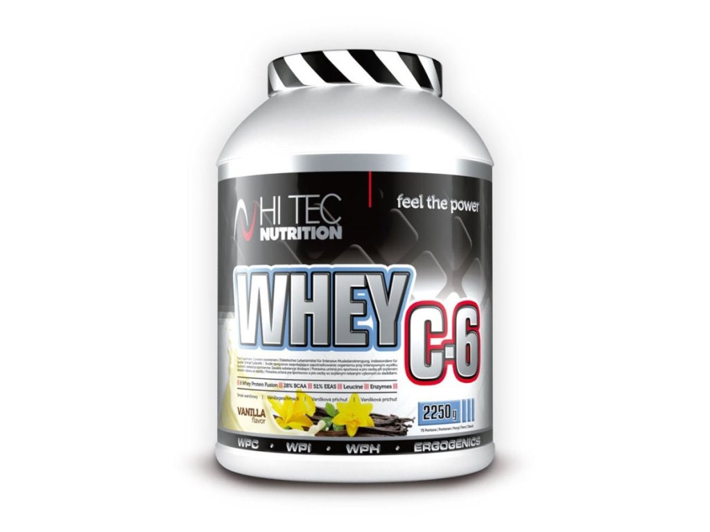 WHEY C-6 je vysoce anabolický a vysokoproteinový přípravek (85% bílkoviny v sušině, BV 104 – 159), obsahující unikátní sadu syrovátkových bílkovin: WPI (izolovaných metodou iontově-výměnné chromatografie a „cross-flow“ filtrace), ultrafiltrovaných WPC a WPH, který dodává organismu sportovce velmi vysokou dávku nezbytných aminokyselin (50%), včetně aminokyselin BCAA (25%), zejména pak L-leucinu který je důležitý pro stimulaci syntézy nových svalových bílkovin.