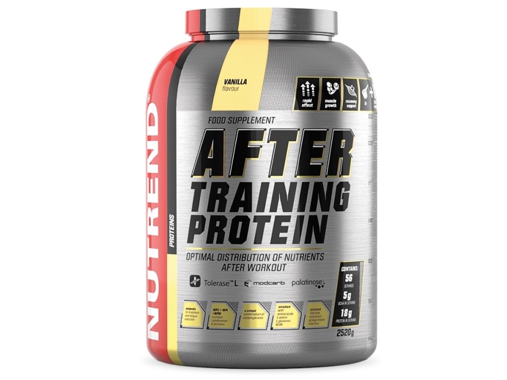 Mimořádné složení tohoto proteinu nabízí všem sportovcům ideální proteinovou směs, určenou pro konzumaci ihned po ukončení náročného tréninku. Základ tohoto proteinu tvoří mimořádně kvalitní proteinová směs, která vyniká lehkou a rychlou vstřebatelností a využitelností. Součástí této směsi je značkový hydrolyzovaný syrovátkový izolát Hydrovon™, prémiový syrovátkový izolát (WPI) a prémiový ultra-filtrovaný koncentrát mléčné syrovátky (WPC). Aby svalstvo mohlo růst, je třeba ukončit katabolickou reakci zapříčiněnou fyzickou aktivitou, doplněním glykogenu díky speciální směsi sacharidů, které jsou v produktu AFTER TRAINING PROTEIN zastoupeny značkovými surovinami Palatinose™ a ModCarb™, které zajistí pozvolné uvolnění glukózy. Unikátní složení doplňuje bioaktivní kolostrum, vysoký obsah větvených aminokyselin (BCAA), extrakt z Ginkgo biloby, směs speciálně zvolených vitamínů a minerálů pro snížení únavy a vyčerpání. Vše je ideálně navrženo pro podporu svalového růstu. Produkt AFTER TRAINING PROTEIN je navíc obohacen o trávicí enzym Tolarase®-L, který podporuje vstřebání mléčného cukru laktózy. Rozmíchání tohoto produktu je ideální při použití šejkru NUTREND