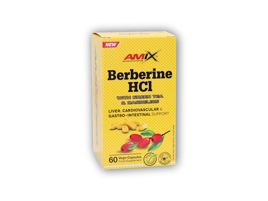 Amix™ Berberine HCl je doplněk stravy v rostlinné kapsli vhodný pro vegany s obsahem ex-traktů z berberinu, zeleného čaje a pampelišky. Dřišťál osinatý podporuje normální činnost jater a kardiovaskulárního systému, má vliv na hladinu cholesterolu a pomáhá udržovat normální tělesnou hmotnost. Dřišťál obecný a pampeliška přispívají k normálnímu trávení.