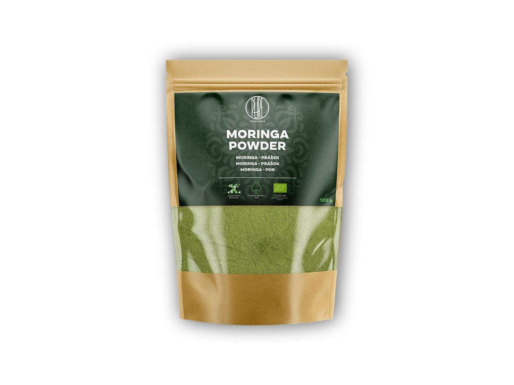 Moringa je přirozeným zdrojem vitamínů a minerálů. BrainMax Pure Moringa je 100% organický prášek, který je vyrobený z listů moringy, které obsahují důležité živiny. Sbírané listy se následně při nízkých teplotách melou na jemný prášek. Díky tomu si Moringa zachová všechny důležité živiny. Má překvapivě sladkou chuť, jemnou konzistenci a prášek je snadno rozpustný. Neobsahuje žádná barviva a je v certifikované BIO kvalitě. To znamená, že neobsahuje pesticidy ani jiné škodlivé látky. Je vhodný pro vegetariány i vegany.