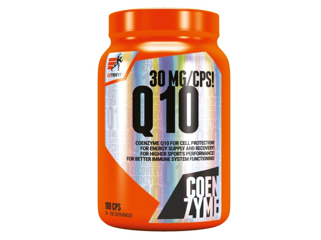 Produkt Coenzyme Q 10 firmy Extrifit obsahuje 30 mg koenzymu Q10 v jedné kapsli, jedné z nejdůležitějších látek vyskytujících se v živočišných buňkách. Jedná se o látku podobnou vitamínům. Koenzym Q10 je částečně tělem produkován a částečně přijímán potravou. S tím, jak stárneme, se schopnost produkce koenzymu Q10 snižuje a hrozí jeho nedostatek. Stejně tak je příjem koenzymu Q10 důležitý, když je naše tělo vystaveno zátěži, jakou je intenzivní silový trénink, o to více, pokud je spojen se striktní dietou. Koenzym Q10 je naprosto nezbytný pro oxidoredukční reakce a funguje jako reaktivátor buněčné energie, stabilizátor buněčných membrán a kofaktor mnoha metabolických procesů.