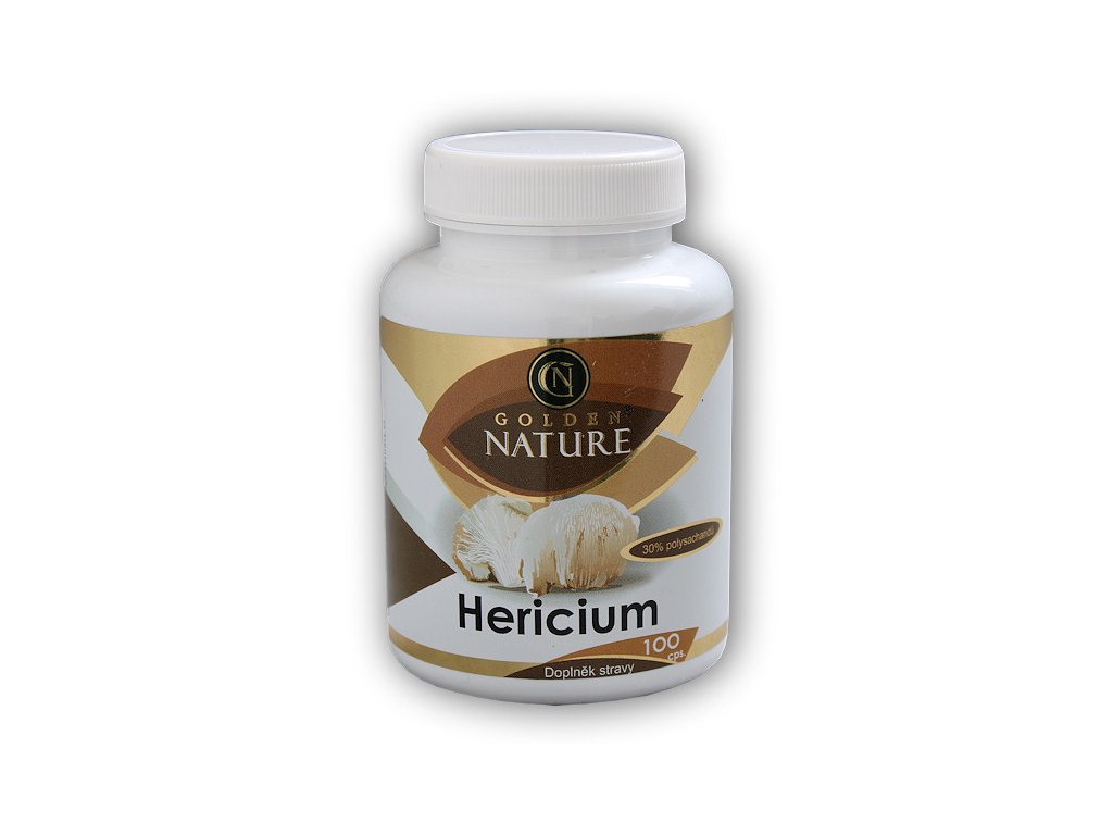 GOLDEN NATURE HERICIUM S VYSOKÝM OBSAHEM V KAPSLI 500 MG A DEKLAROVANÝM PODÍLEM POLYSACHARIDŮ 30%.