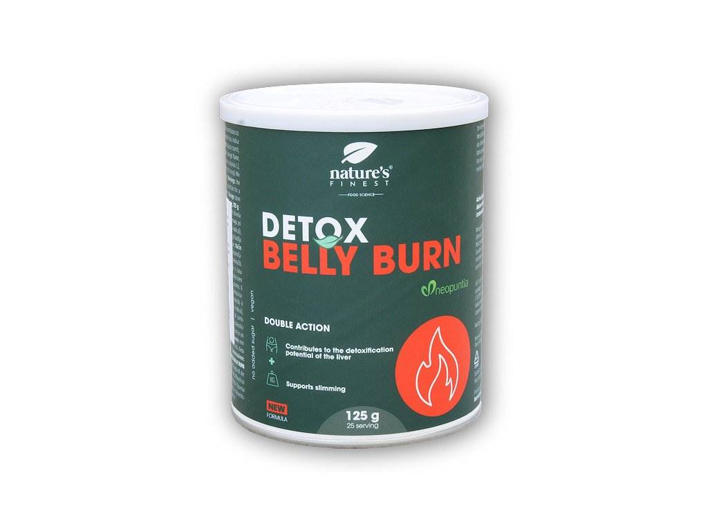 Detox Belly Burn je určený pro podporu spalování nadbytečného tuku v oblasti břicha. Obsahuje patentovanou směs NeopuntiaTM, která dodává pocit sytosti a podporuje vylučování nestrávených cukrů a tuků. Obsažený ostropestřec a chlorella mají antioxidační účinky související s činností jater i zažívacího systému, zatímco artyčok stimuluje trávení. Detox Belly Burn je slazený pouze steviol-glykosidy a má lehkou citrusovou příchuť.