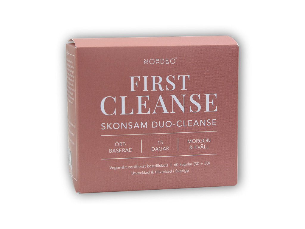 Nordbo First Cleanse přináší úplně nový standard v doplňcích s bylinnými očistnými kůrami. Celkem 16 (!) účinných rostlinných složek rozdělených na ranní a večerní dávku přináší komplexní očistu pro celé tělo a pro nejvíce zatížené oblasti, které se starají o zpracování odpadních látek. Látky obsažené ve First Cleanse pracují nepřetržitě - podporují vylučování toxinů z těla, podporují přirozenou funkci zažívání (zároveň nejsou laxativní) a aktivují přirozená detoxikační centra organismu. Nordbo First Cleanse poskytuje šetrnou kůru určenou pro ty, kteří s detoxem začínají a nebo mají citlivé zažívání.