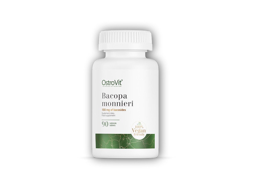 obsahuje: Objemové činidlo: mikrokrystalická celulóza; plnidlo: mikrokrystalická celulóza; extrakt z celé rostliny bacopa monnieri (Bacopa monnieri (L.) Wettst.) standardizovaný na 50 % bacosidů, škrob, protispékavé látky: hořečnaté soli mastných kyselin, oxid křemičitý.