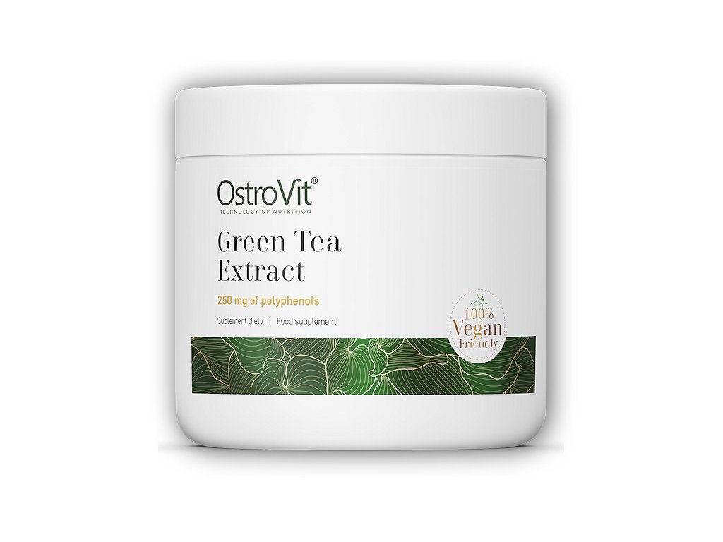 Extrakt ze zeleného čaje OstroVit je přírodní doplněk stravy ve formě prášku z listů zeleného čaje. Výrobek obsahuje mnoho polyfenolů, které hrají v organismu velmi důležitou roli. Zelený čaj jemně stimuluje organismus k práci, pomáhá spalovat tukové tkáně a podporuje trávení, stimuluje mozek a má čistící vlastnosti.