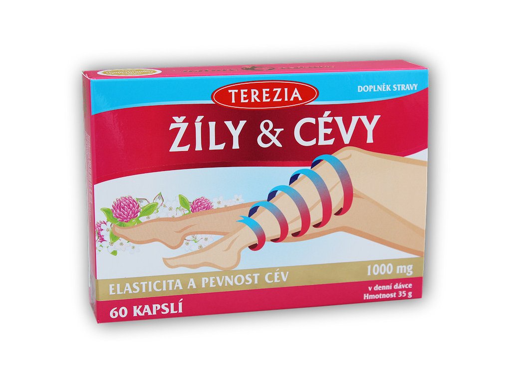 1 kapsle obsahuje: 500 mg směsi ŽÍLY & CÉVY [extrakt květu řebříčku obecného (Achillea millefolium), extrakt plodu hlohu obecného (Crataegus laevigata), extrakt nati truskavce ptačího (Polygonum aviculare), extrakt šípku (Rosa canina), extrakt nati pohanky obecné (Fagopyrum esculentum) 50 mg, extrakt nati tužebníku jilmového (Filipendula ulmaria) 50 mg, extrakt nati jetele lučního (Trifolium pratense) 50 mg, extrakt plodu temnoplodce černoplodého (Aronia melanocarpa), extrakt bohatý na taxifolin (Larix gmelinii Rupr) 3 mg].