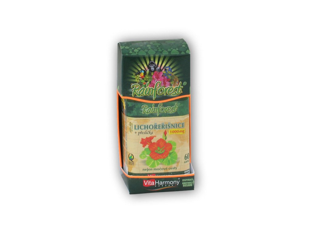 Lichořeřišnice větší, latinsky Tropaeolum majus, je léčivá bylina, která se již v minulosti používala pro své antibakteriální a diuretiké účinky. Lichořeřišnice se také přezdívalo \"rostlinné antibiotikum\". Unikátní kombinace s přesličkou rolní komplexním mechanismem podporuje normální funkci močové soustavy a ledvin a stimuluje přirozenou odolnost organismu. Přeslička rolní obsahuje slabě močopudnou látku, která podporuje tvorbu moči a močení. Navíc má přeslička i antioxidační účinky.