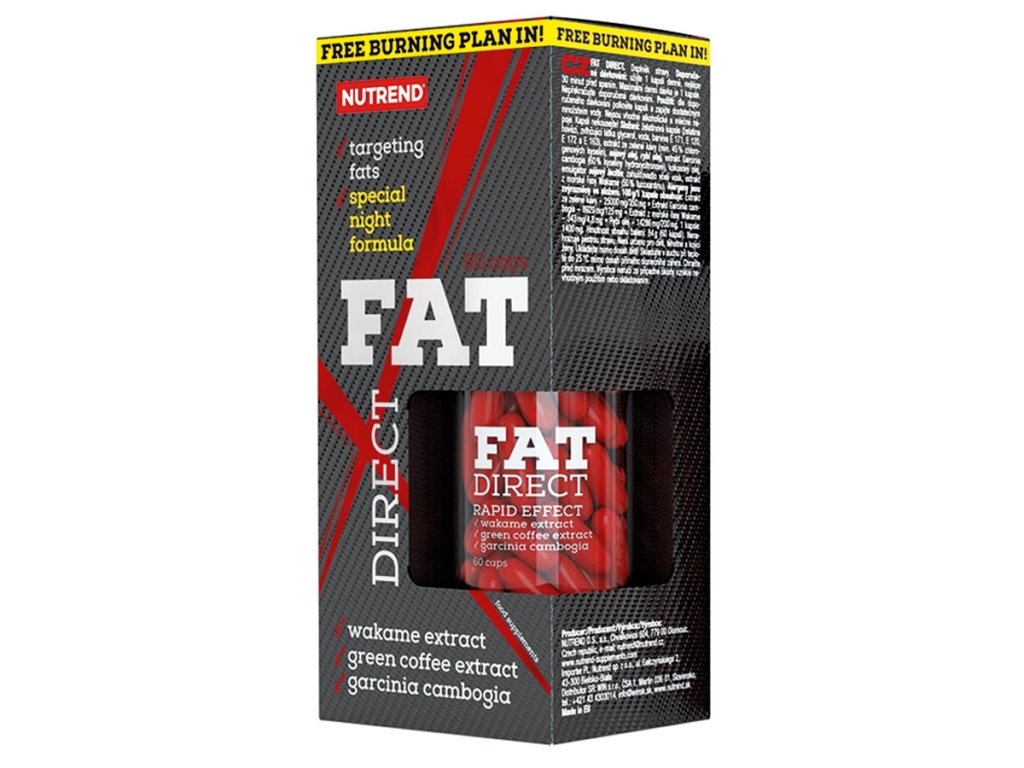 je unikátní spalovač, který v sobě kombinuje sílu přírodních výtažků a nejnovějších technologií. Je jedinečný nejen svým složením, ale i dobou použití. FatDirect je totiž prvním nočním spalovačem od NUTRENDU. Je speciálně vyvinut k odbourávání tuků ve spánku. Receptura obsahuje výtažky z mořských řas wakame, ale i z garcinie cambogie a ze zelené kávy. Produkt FatDirect neobsahuje povzbuzující látky a je určen k večernímu užití - stačí 1 kapsle 30 minut před spánkem.