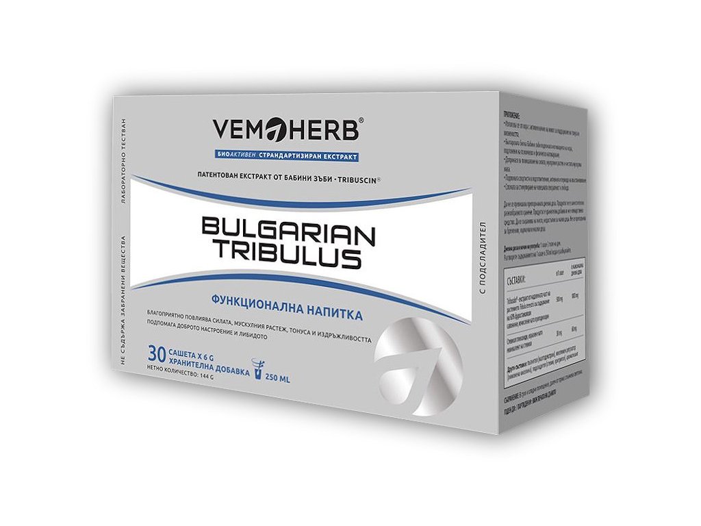 Hlavním benefitem originálního bulharského VemoHerb Tribulus je vysoký obsah steroidního saponinu Protodioscinu (standardizace na 60%), což je v současné době v rámci celosvětového měřítka jeden z nejsilnějších dostupných extraktů z obsahem Protodioscinu na trhu (POZOR – nezaměňovat s celkovými saponiny!) Standardizovaný obsah Protodioscinu je garancí nízkého obsahu ostatních méně účinných saponinů jako je Protogracilin a další, dále je limitován obsah flavonoidů (vždy pod 10%) a taninů (vždy pod 10%).