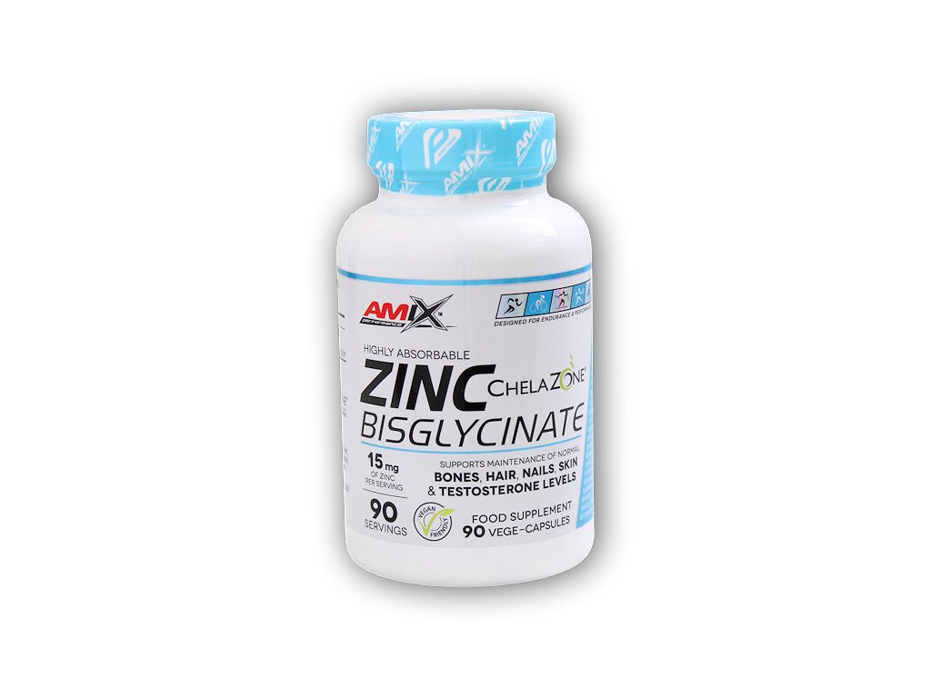 Zinc Bisglycinate je doplněk stravy v rostlinné kapsli s organickou chelátovou formou zinku. Zinek přispívá k udržení normálního stavu kostí, vlasů, nehtů, pokožky, hladině testosteronu v krvi a zraku.