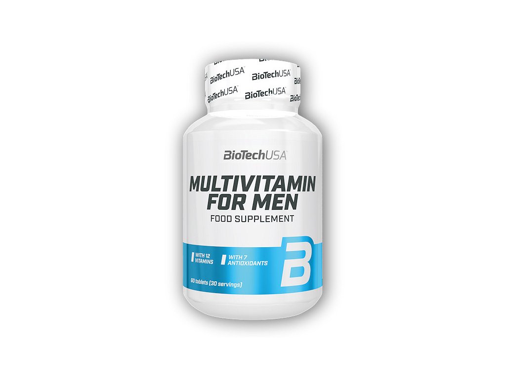BioTech Multivitamin for Men dodává vyvážené živiny s důrazem na klíčové aminokyseliny, antioxidanty z výtažků ovoce a zeleniny, stejně jako celou řadu vitamínů B, vhodný na doplnění zdravé výživy speciálně pro muže.