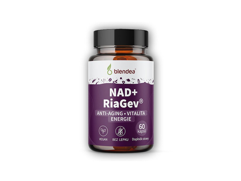 Kapsle Blendea NAD+ Riagev® obsahují pouze jednu aktivní složku a to patentovanou kombinaci nikotinamidu (forma vitamínu B3) a D-ribózy, která podporuje přirozenou tvorbu NAD+ a buněčné energie.