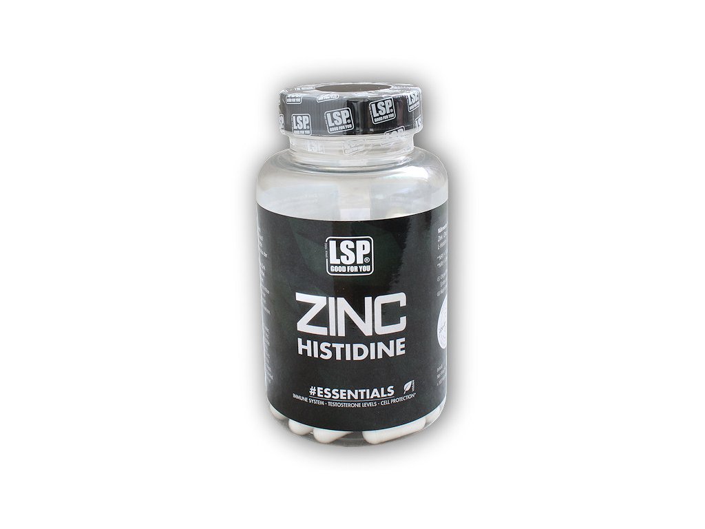 obsahuje: Plnidlo celulóza, Glukonát zinečnatý(20,1 %), celulóza (kapsle), L-Histidin (11,3 %), palmový olej, protispékavá látka (hořečnaté soli).