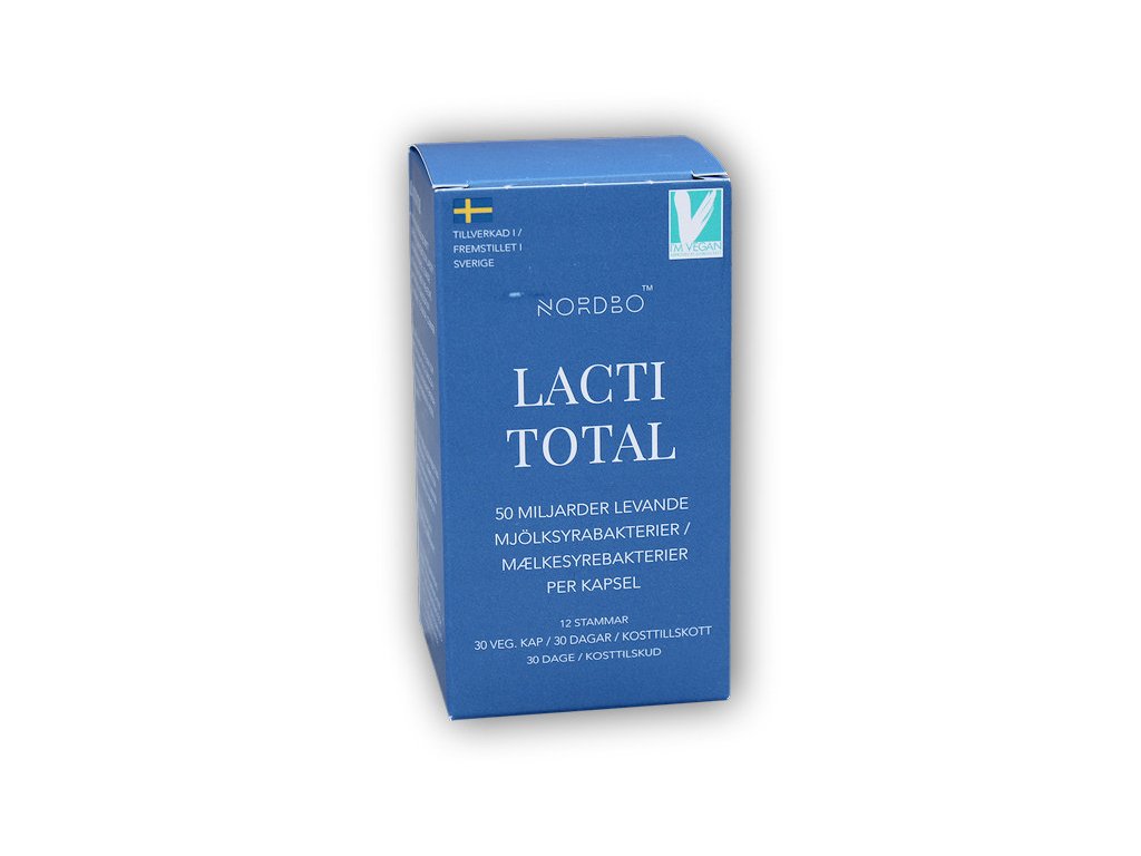Nordbo Lacti Total obsahuje 50 miliard živých bakterií, zastoupených ve 12 (!) kmenech, určených pro komplexní podporu zažívacího traktu. Při stresu, velké psychické nebo fyzické zátěži, vlivem špatného životního stylu, alkoholu, nebo antibiotik, může ve střevech dojít k nerovnováze přirozené mikroflóry. V takovém případě pak dochází k problémům v dalších oblastech. Přirozená mikroflóra v zažívacím ústrojí tvoří cca 80 % buněk imunitního systému v rámci našeho celého těla, proto je jejich optimální fungování velmi důležité. Kapsle (DRcaps®) jsou patentované a chrání obsah proti žaludeční kyselině, takže se bakterie mohou v kapsli dostat až do střevního systému, tedy na místo určení bez jakýchkoliv problémů a v plné síle! Produkt je vhodný pro všechny jedince zaměřené na: