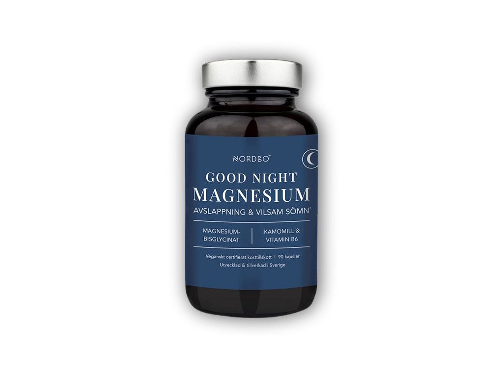 Magnesium Good Night je účinný přírodní doplněk pro podporu při nespavosti. Obsahuje organickou formu hořčíku - bisglycinát hořečnatý, kde je hořčík navázaný na aminokyselinu glycin, jejíž účinky stejně jako u hořčíku souvisí s kvalitou spánku a nervovou soustavou. Účinek doplňku zesiluje extrakt z květu heřmánku, který má vlastnosti související s úzkostnými stavy, neklidem a nespavostí. Tyto složky doplňuje vitamín B6.