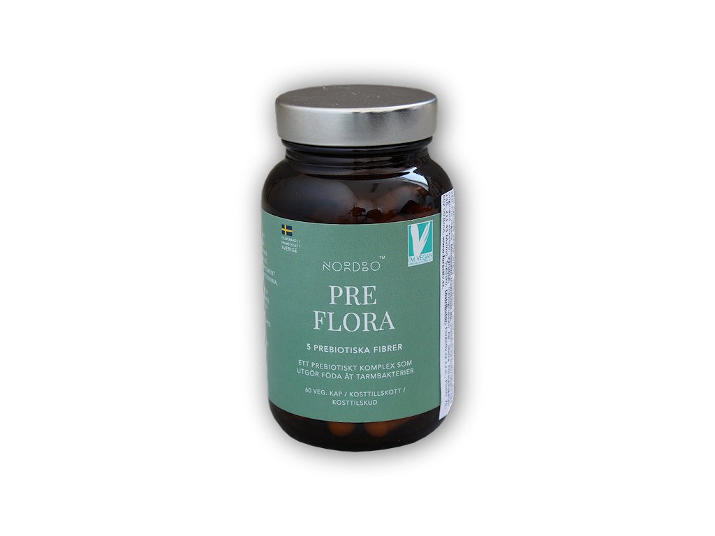 Certifikát I\'m Vegan organizace Djurens Rätt (Animal Rights) Produkt neobsahuje živočišné složky, pojiva a nežádoucí balastní složky NORDBO = kvalita a klinicky prověřené zdroje + udržitelnost a etická odpovědnost Nordbo PreFlora obsahuje 5 druhů prebiotik - ResistaidTM = arabinogalaktan extrahovaný ze severoamerického modřínu. Arabinogalaktan je speciální přírodní polyscharid, který se skládá z látek zvaných karabinogalaktany a polyfenoly. Účinek složky ResistaidTM byl podpořen třemi klinickými studiemi. Dalšími složkami jsou inulin, rezistentní škrob, pektin a fruktooligosacharidy. Tyto látky fungují dvojím způsobem - v prvé řadě stimulují činnost žaludku a ve střevě tvoří výživu pro prospěšné biokultury. Kdy potřebujeme prebiotika? Jednoduše řečeno vždy, když potřebujeme probiotika, pro které tvoří výživu a základ. Proto je vhodné doplněk PreFlora užívat společně s produkty Lacti Total nebo Lacti Kvinna. Produkt je vhodný pro všechny jedince zaměřené na: