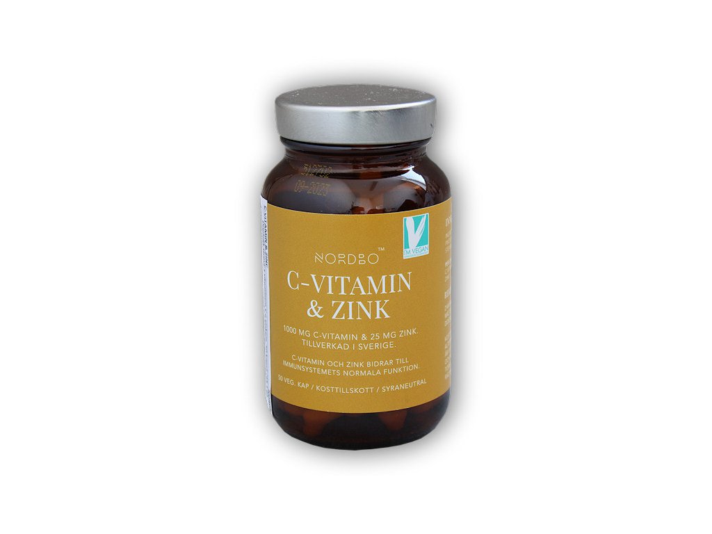 Nordbo Vitamin C & Zinc obsahuje dvě složky důležité pro efektivní obranný štít - vitamín C a zinek. Vitamín C je v doplňku obsažený ve velmi vysoké dávce - 1000 mg na 1 kapsli ( = 1250 % RHP). Navíc je v kysele neutrální formě askorbátu vápenatého, je tedy šetrný k žaludku. Zatímco zinek je v chelátované formě pikolinátu zinečnatého, kdy je zinek vázaný s kyselinou pikolinovou (přirozený metabolit tryptofanu), a je tedy velmi dobře dostupný pro tělo. Proč askorbát vápenatý? Mnoho doplňků obsahuje kyselinu L-askorbovou, která má kyselé pH a může navíc dráždit žaludek. Askorbát vápenatý je oproti tomu pufrovaná forma vitamínu C, která my vyšší (zásaditější) hodnotu pH a je šetrná k žaludku i ve vyšších dávkách. Certifikace I\'m Vegan Certifikát I\'m Vegan uděluje švédská organizace Djurens Rätt (Animal Rights), která garantuje, že produkt je 100% rostlinného původu a při jeho výrobě nebyly použity žádné živočišné složky. Certifikát se uděluje potravinám, doplňkům stravy, hygienickým produktům a kosmetice. I\'m Vegan představuje jednoduchou cestu, jak si spotřebitel může být jistý, že značka nebo produkt splňuje standarty organizace Djurens Rätt. O certifikátu 1.Djurens Rätt vznikla v roce 1882 a nyní je švédskou vedoucí organizací v oblasti ochrany zvířat. Jde o politicky nezávislou organizaci, která se zaměřuje na zvýšení ochrany zvířat v domácím i mezinárodním měřítku. 2.Produkty s označením I\'m Vegan musí být 100% rostlinné. Je u nich zakázáno testování na zvířatech a nesmí být použity žádné živočišné složky nebo živočišné deriváty. 3.Značka musí pro udělení certifikátu doložit veškerou dokumentaci, aby byl 100% prověřen původ produktu. O značce Nordbo NORDBO je švédská značka, jejíž filozofie je založena na dvou pilířích: kvalita a klinická dokumentace + udržitelnost a etická odpovědnost. Značka spojuje severskou tradici a kvalitu, se smysluplnou inovací a čistotou použitých složek = inovativní vývoj klasických doplňků, lepšími způsoby. Skvělým příkladem je nativní