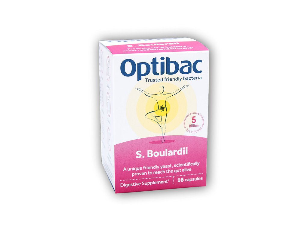 Optibac Saccharomyces boulardii obsahuje probiotika Saccharomyces ve vysoké koncentraci a je určený pro podporu během průjmu a zažívacích obtíží. Hodí se pro muže i ženy, lze jej používat jako pomoc při průjmu nebo jakýchkoli jiných problémech se zažíváním, při cestování (i jako prevenci) nebo při vysoké zátěži. Saccharomyces boulardii obnovují přirozené prostředí a zároveň hubí škodlivé bakterie. Jde o velmi dobře prověřený kmen probiotik, který je po celém světě používán už přes 50 let. Probiotika Saccharomyces boulardii nemusí být v lednici, je tedy možné je nosit kdekoli sebou a užít kdykoli, pokud bychom cítili, že zažívání není v pořádku.   Probiotika mají vlastnosti souvisejí také s tzv. osou střeva-mozek (gut-brain). Je vědecky popsané, že naše střeva jsou propojená s mozkem sítí nervových spojení. Vzájemně se tak ovlivňují - při špatném stavu střevního mikrobiomu dochází ke zhoršení psychického stavu. K poklesu nálady, snížení koncentrace i rozvoji deprese. Péče o mikrobiom je proto jedním ze základních předpokladů pro vyrovnaný psychický stav.   OPTIBAC SACCHAROMYCES BOULARDII