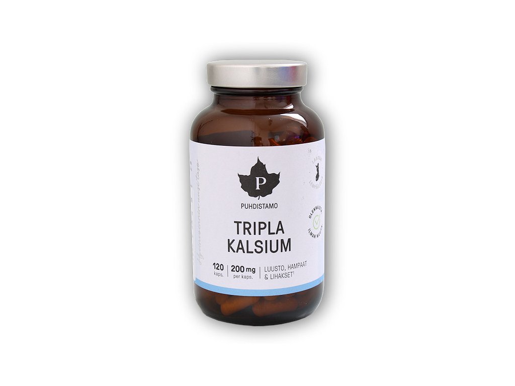 Tripla Calcium obsahuje tři formy vápníku pro co nejefektivnější doplnění tohoto zásadního minerálu do organismu. Uhličitan vápenatý je běžná forma vápníku, která má alkalickou povahu, používá se kromě doplnění vápníku také při refluxu a zmírňuje kyselé prostředí žaludku. Malát vápenatý je organická forma vápníku, kde je vápník spojený chelátovou vazbou s kyselinou jablečnou, a bisglycinát je organická forma spojená s aminokyselinou glycin.