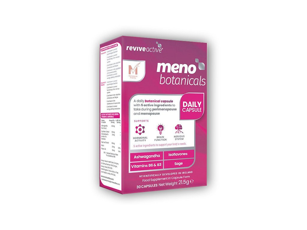 5 bioaktivních složek - isoflavony extrahované ze sóji, extrakt ze šalvěje, ashwagandha, probiotika, niacin a vitamín B6 / best-seller Made In Ireland.